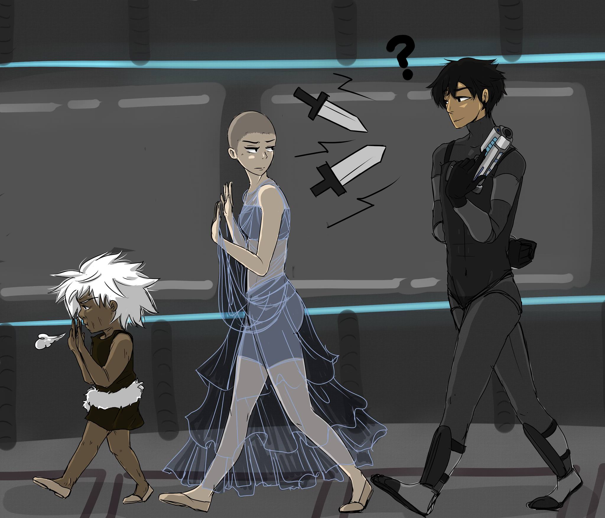 Varrin “rescues” Eris and Miguri from Alyra. Artist: Celeste DeWolfe