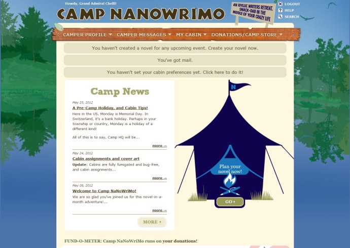Camp NaNo has a feature called Cabins, where they will match you up into “cabins” with other writers – sort of forcing you into a social support system. You can choose your cabin mates, they can be randomly assigned, or you can ask to be placed by age or genre. Not being in a cabin is also an option.