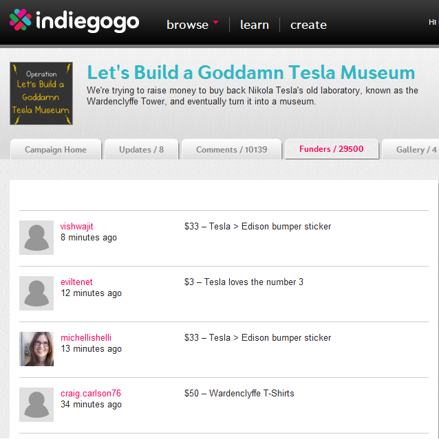 And yes, I did the research to make sure this isn’t a scam. Here’s a link to the Tesla Science Center, where all the donated money is going. Here’s an article from the Guardian about the campaign.