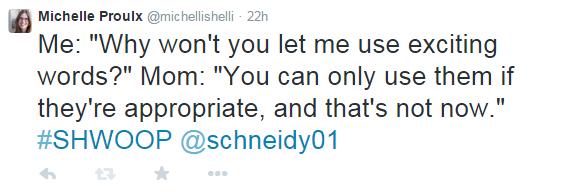 SHWOOP editing session #2 went off without a hitch last night, and was once again live-tweeted by yours truly. Here are the highlights: